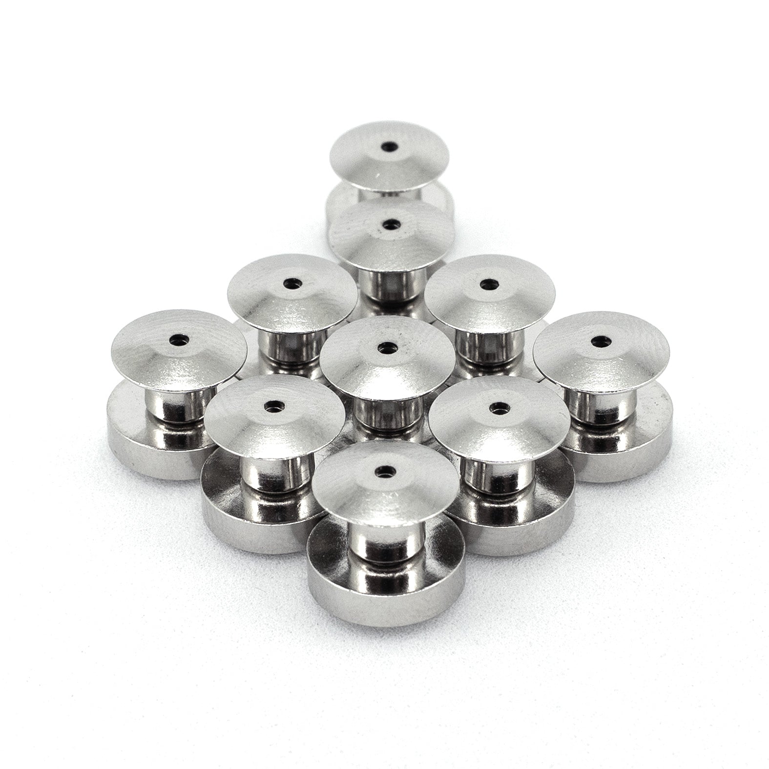 Broches magnéticos con acabado plateado y sistema de bloqueo de resorte interno (10 unidades)